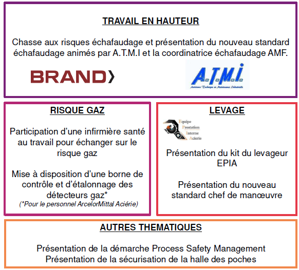 Vous trouverez le programme de la journée santé sécurité de l’Aciérie ci dessous :